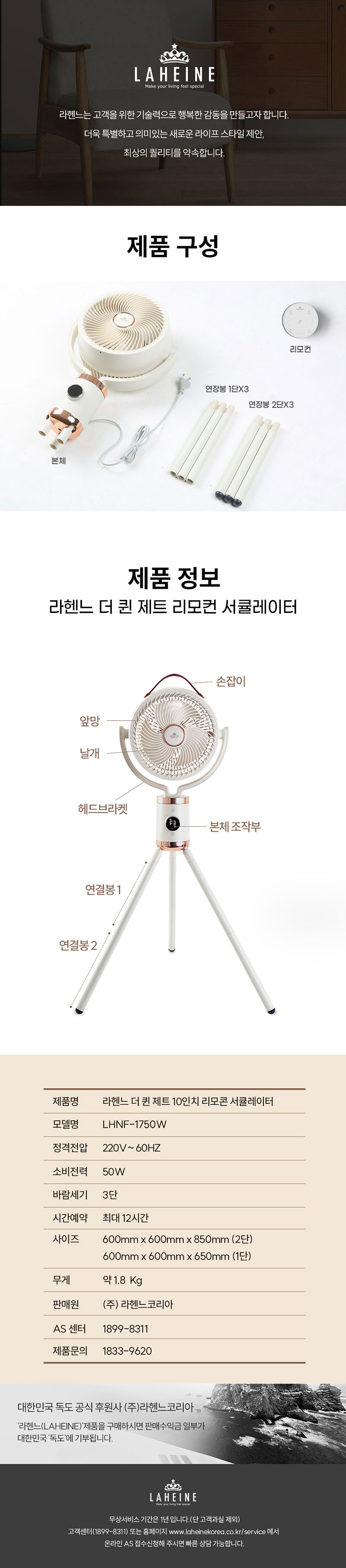 [라헨느] 더 퀸 제트 10인치 리모콘 서큘레이터 LHNF-1750W