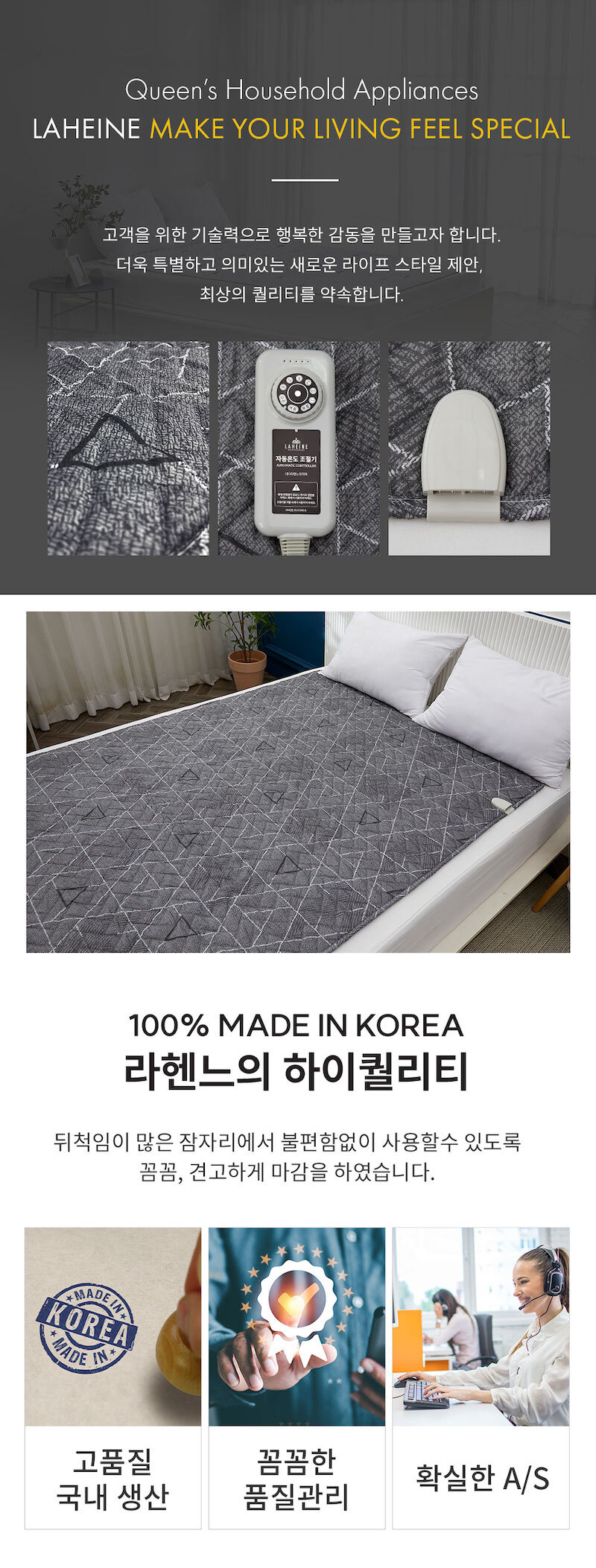 [라헨느] 스노우그레이 탄소열선 카본매트 워셔블 양면 전기요 싱글/캠핑/가정용 HL-CP1001
