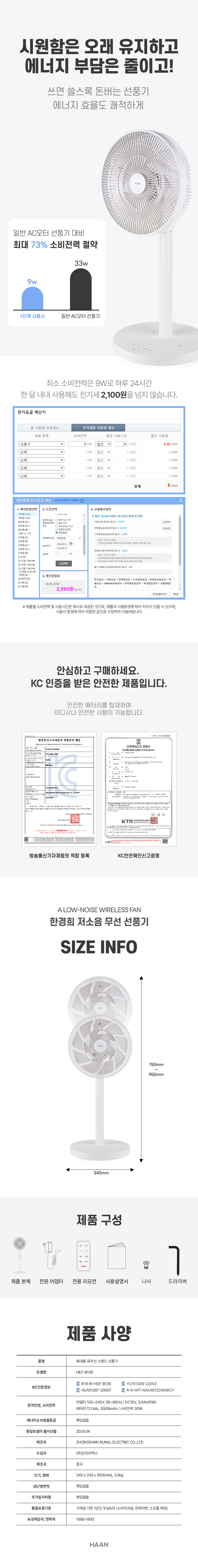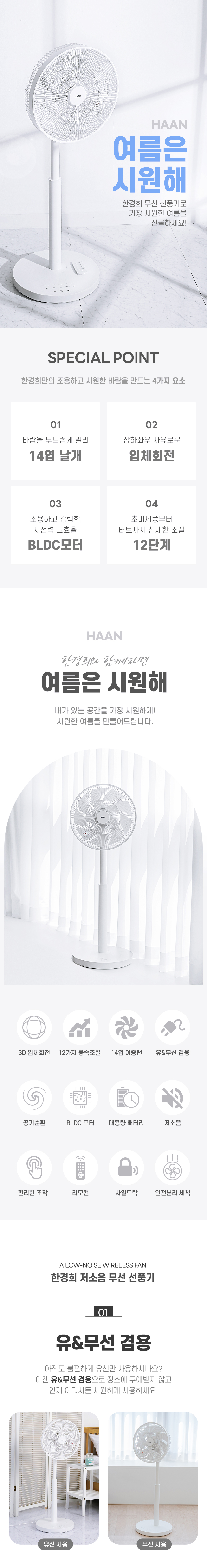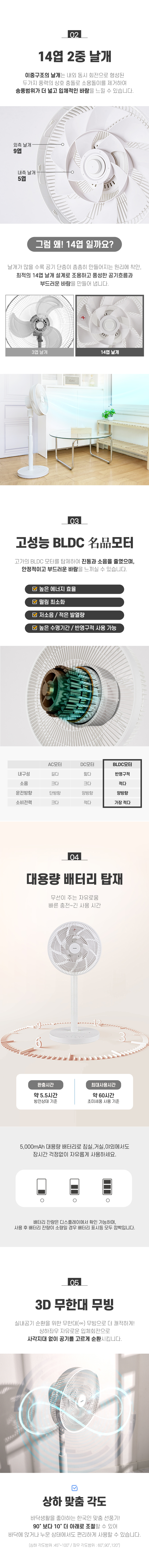 [한경희생활과학] 무선 BLDC 14엽 저소음 써큘레이터 선풍기 HEF-B135