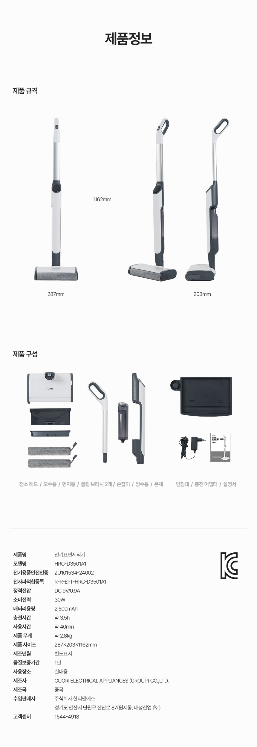 [한경희생활과학] 롤링 물걸레 청소기 HRC-D3501A1