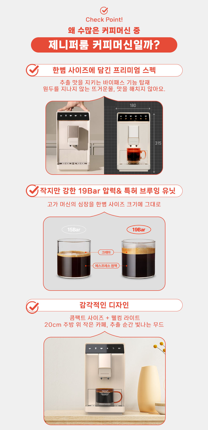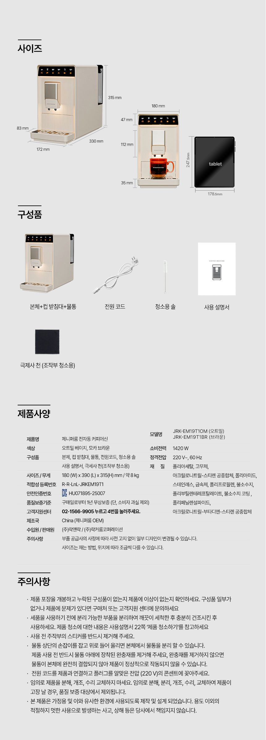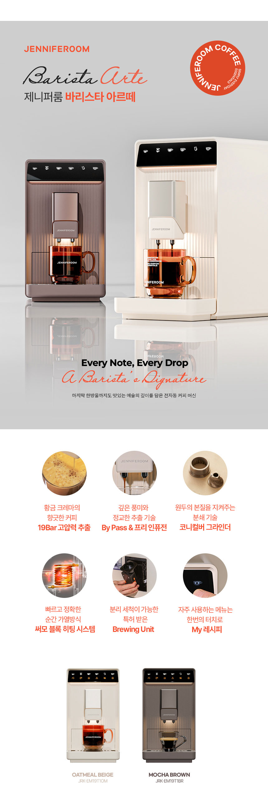 [제니퍼룸] 최신형 전자동 에스프레소 커피머신 바리스타 아르떼 브라운/ JRK-EM19T1BR