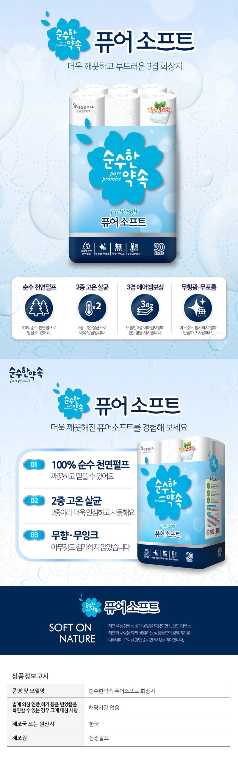 삼정펄프 퓨어소프트 천연펄프 3겹 화장지 30롤