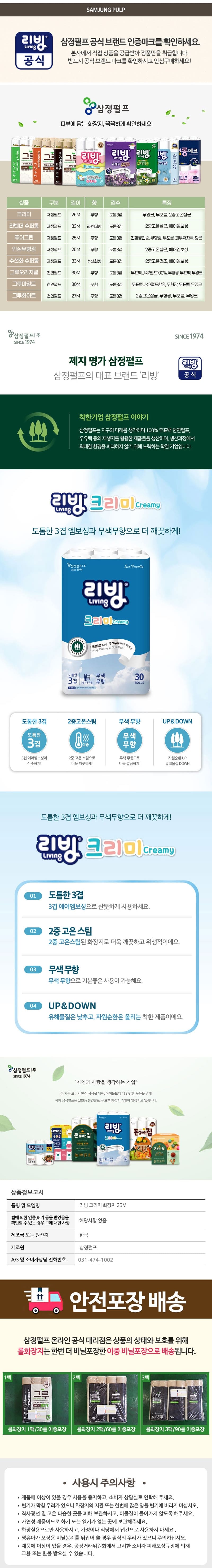 삼정펄프 리빙 크리미 화장지 30롤x3