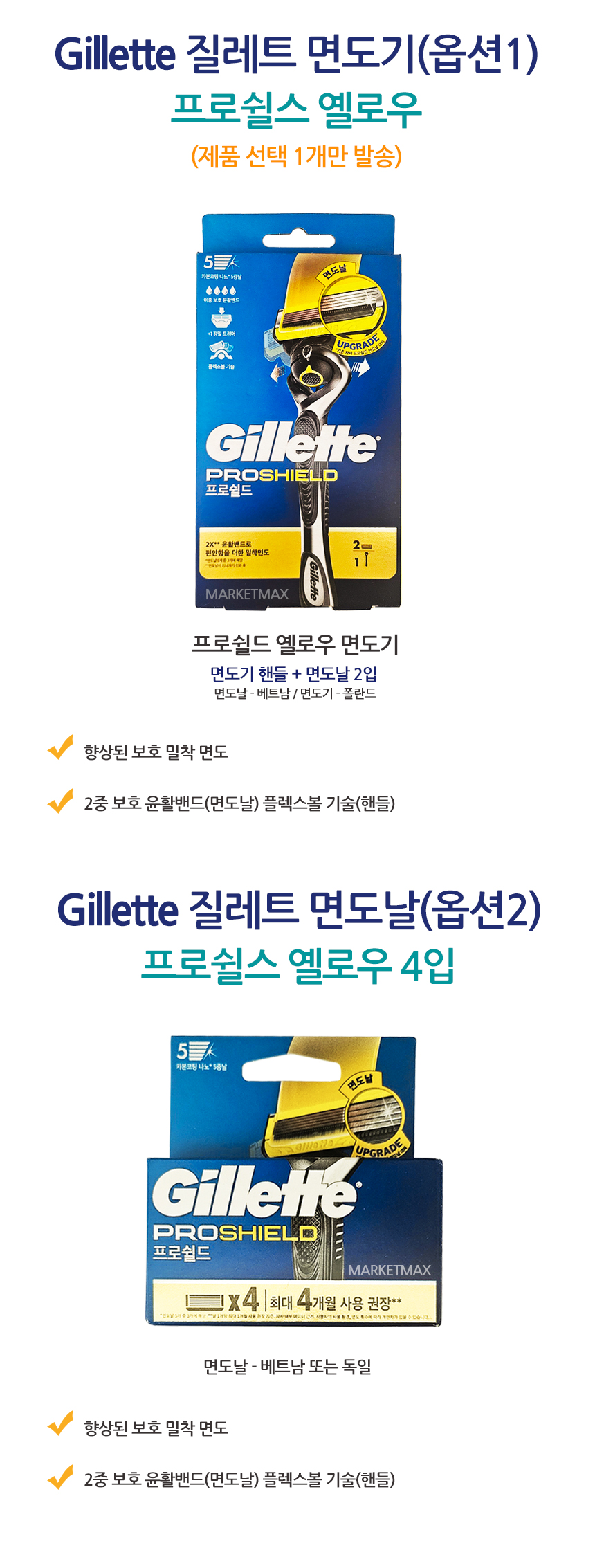 [질레트] 프로쉴드 옐로우 면도기 2UP (본체1개/면도날2개)