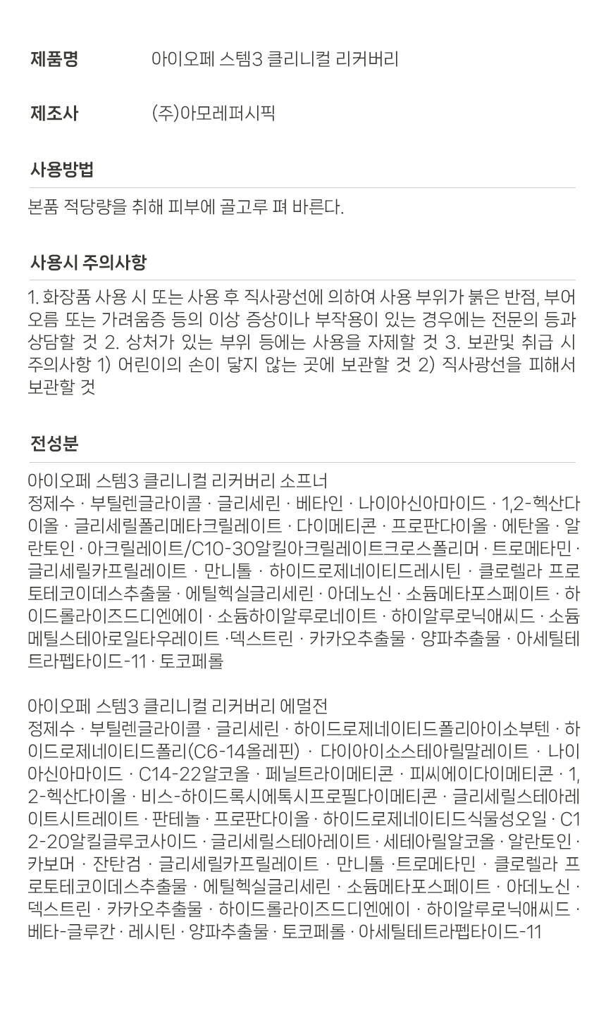 아이오페 스템3 클리니컬 리커버리 2종세트 물광플럼핑