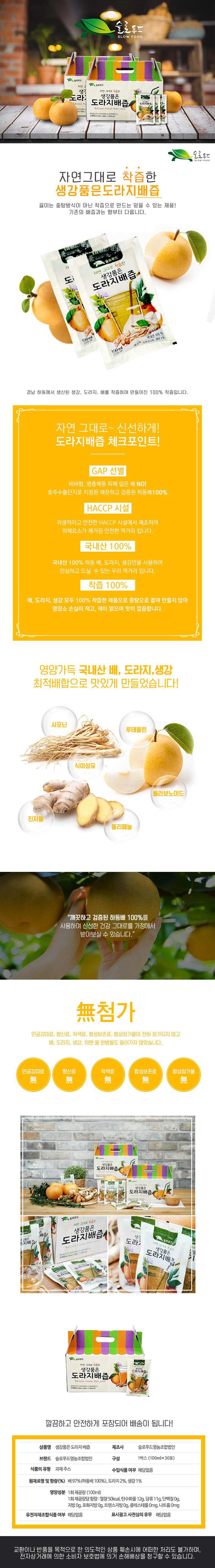 [슬로푸드] 경남하동 착즙100% 생강품은 도라지배즙 30포
