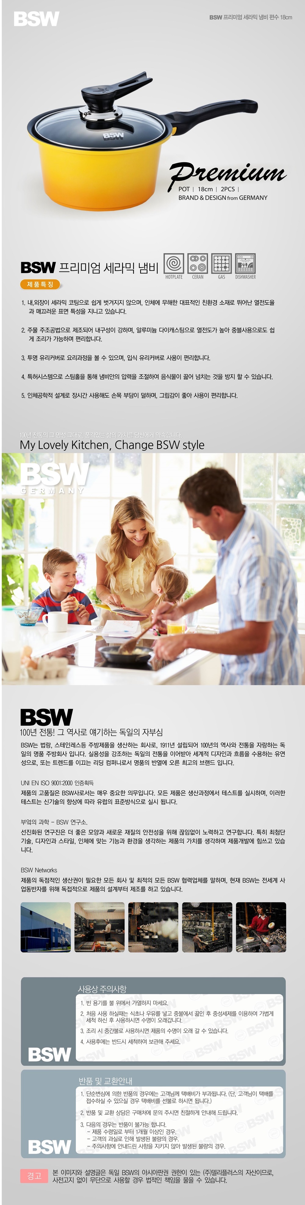 [BSW] 프리미엄 세라믹 냄비 편수18cm