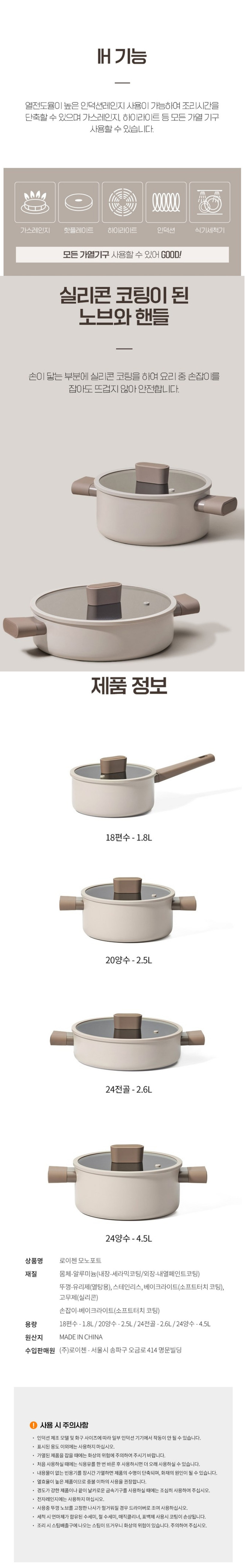 [로이첸] 모노포트 세라믹 양수냄비IH 20cm