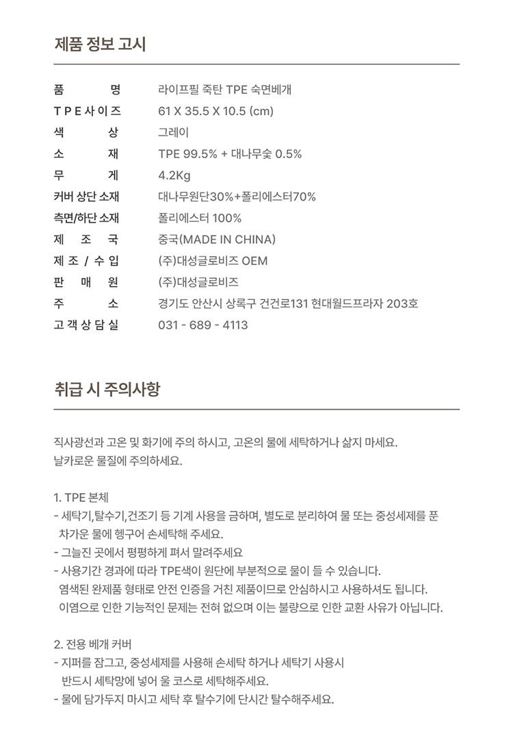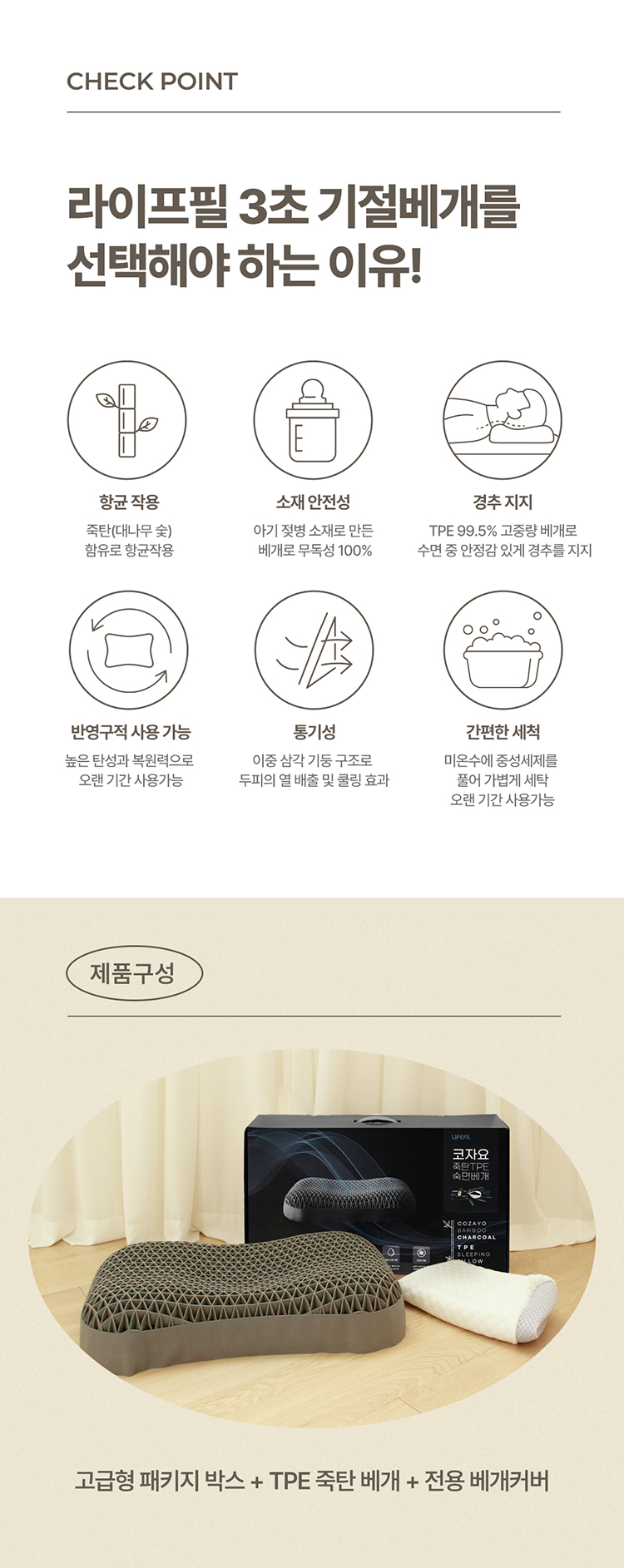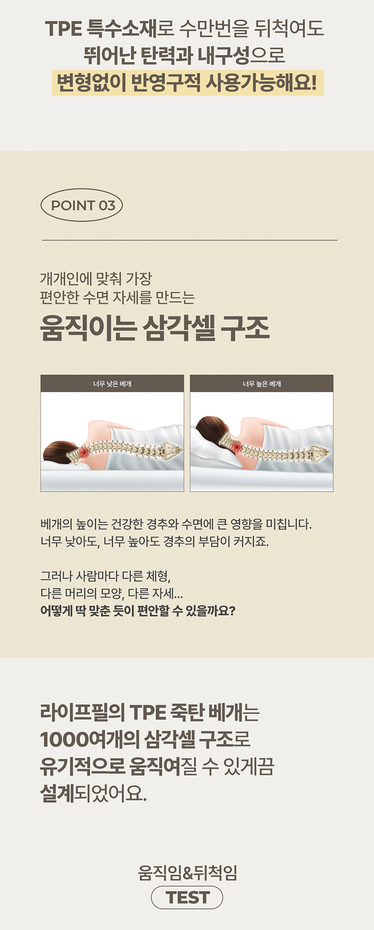 라이프필 TPE 숙면 베개 높은형