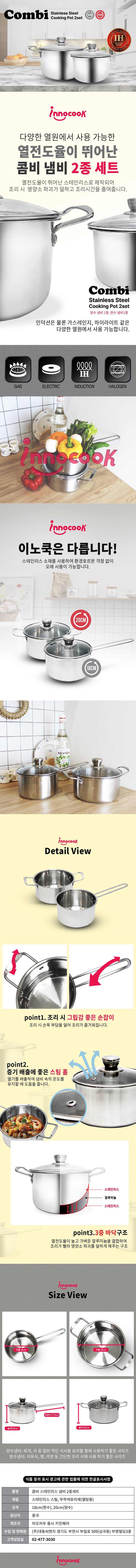 [이노쿡]콤비 스테인리스 냄비 2종세트 18편수+20양수