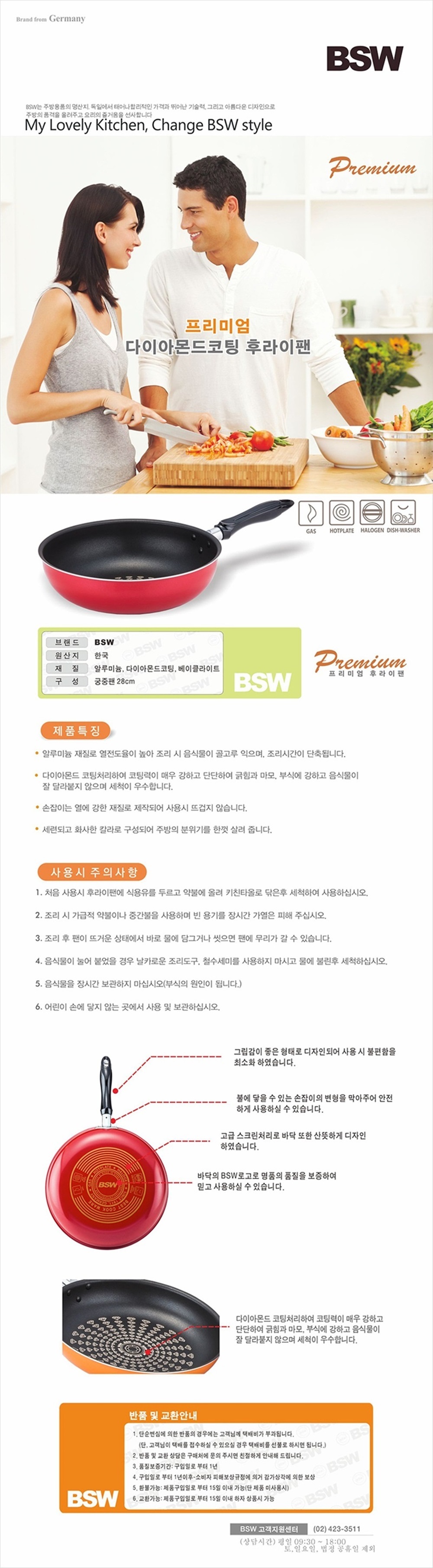 [BSW] 프리미엄 다이아몬드코팅 궁중팬 28cm