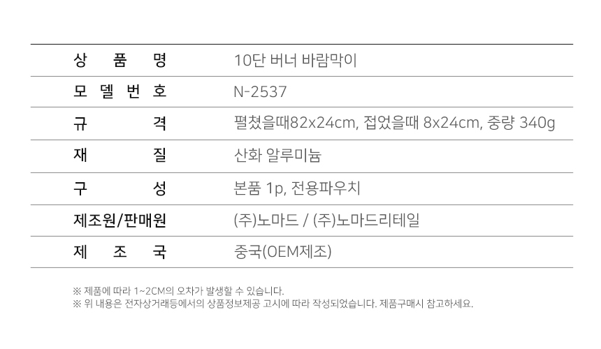 노마드 휴대용 캠핑용 화로대 10단 버너 바람막이 일반형 N2537