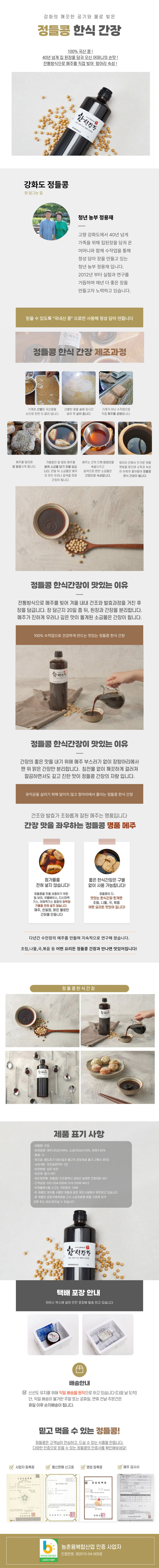 정들콩 강화도 조선간장100%국산재래집국간장1L