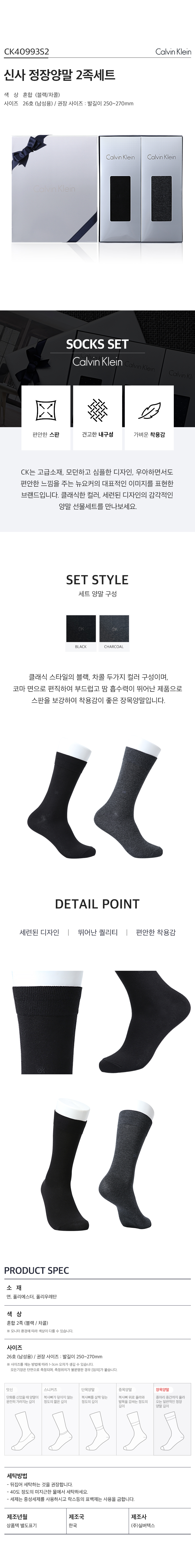 [캘빈클라인] 신사정장 양말 2족 세트 CK40993-2