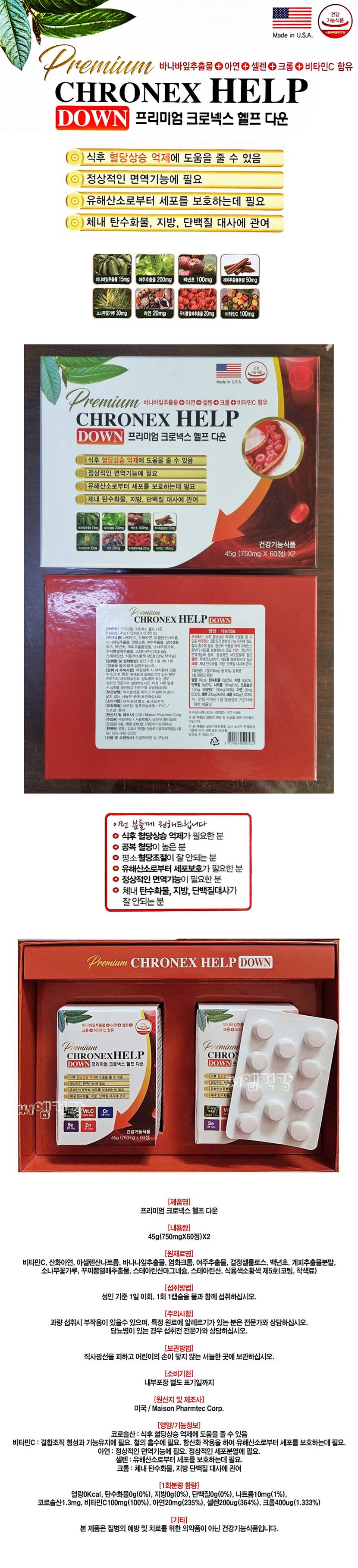 [미국직수입]프리미엄 크로넥스 헬프다운(혈당조절 상승억제 건강기능식품) / 45g(750mg*60정)*2박스