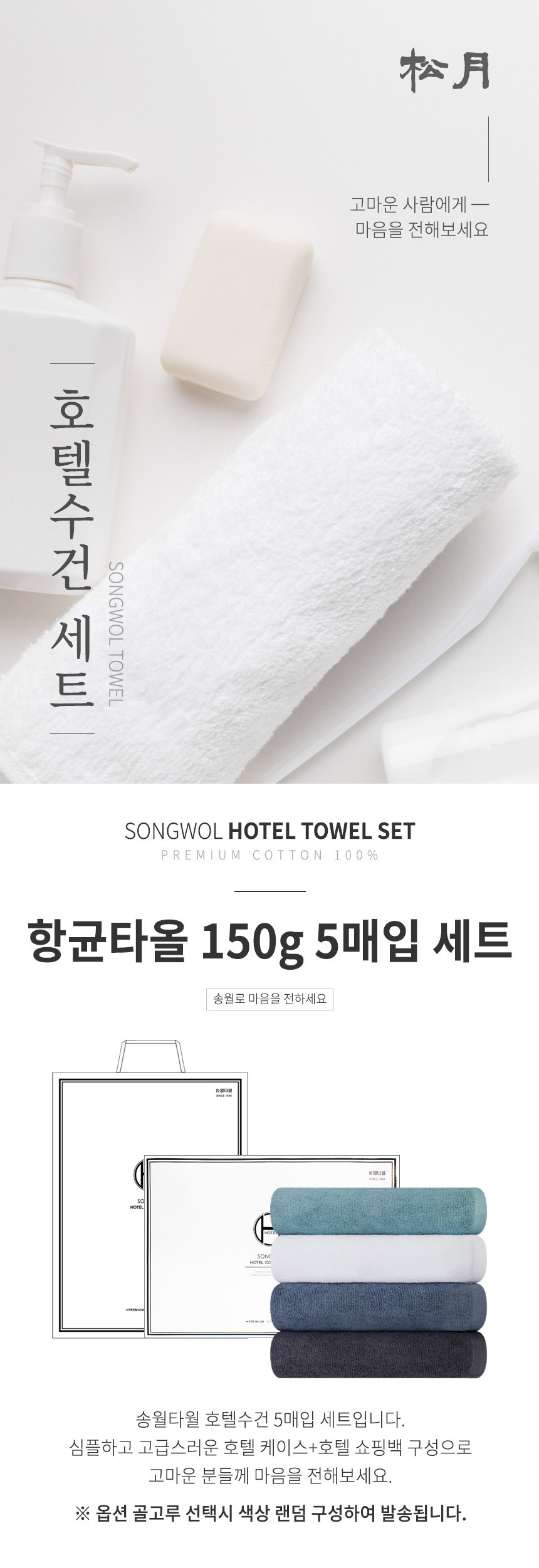 [송월] 항균99.9% 항균무지 150g 호텔타올 5매입 선물세트
