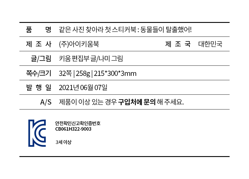 같은 사진 찾아라 첫 스티커북 (동물들이 탈출했어)