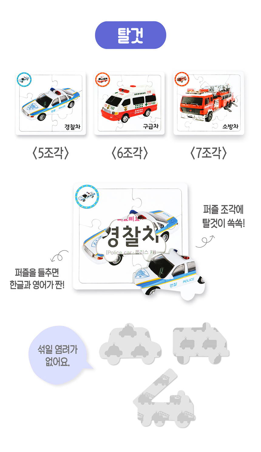 • 꼼지락 꼼지락 두조각 퍼즐 (탈것)