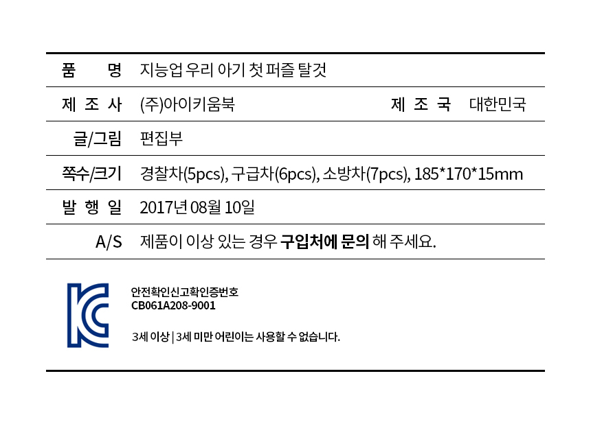 지능업 우리 아기 첫 퍼즐 (탈것)