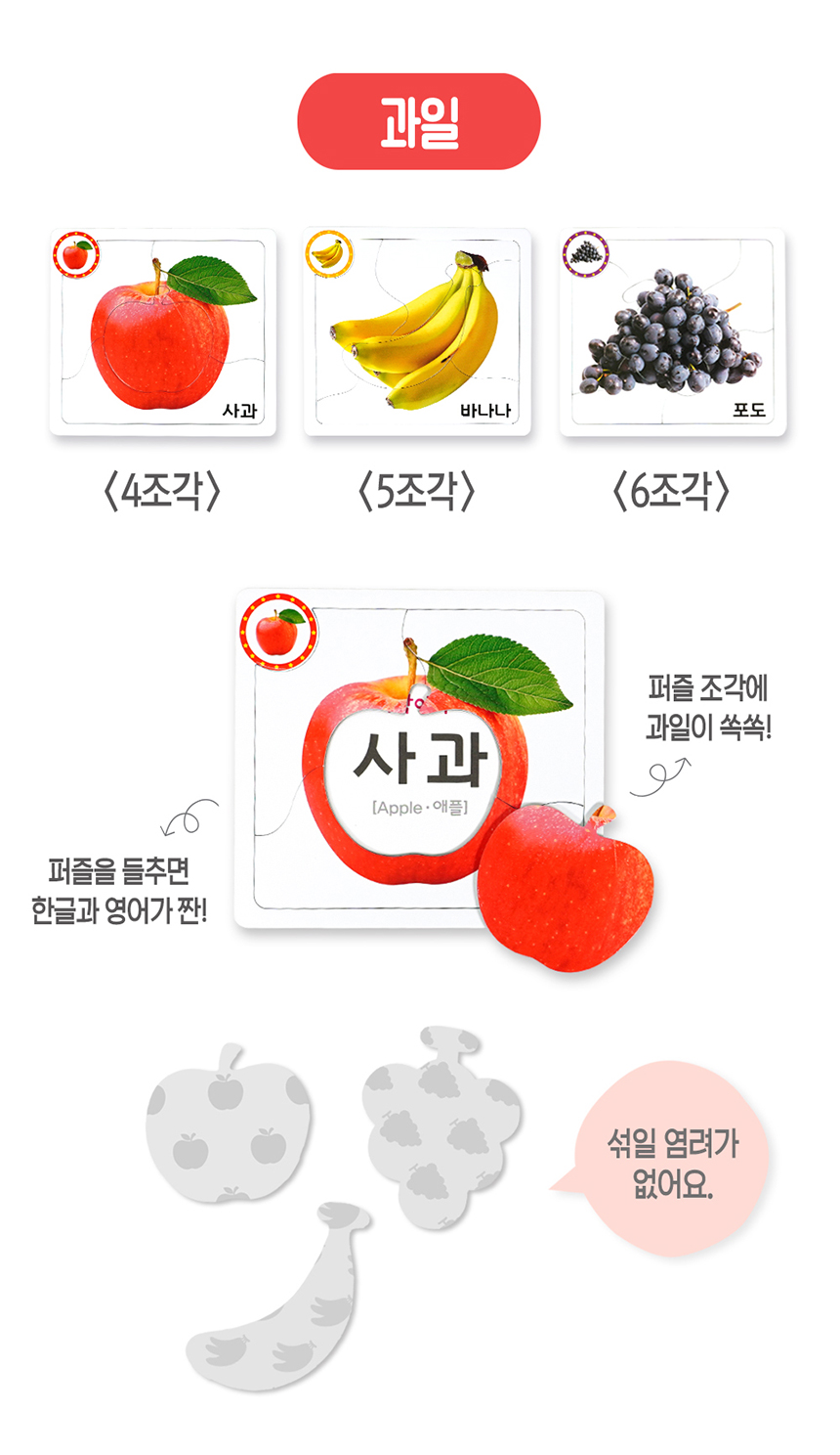 • 꼼지락 꼼지락 두조각 퍼즐 (과일채소)