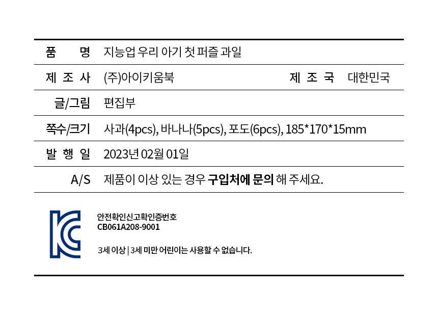 지능업 우리 아기 첫 퍼즐 (과일)