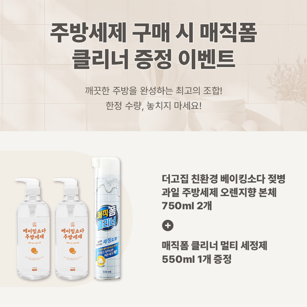 더고집 친환경 베이킹소다 젖병 과일 주방세제 오렌지향 본체 750ml 2개 + 매직폼 클리너 멀티 세정제 550ml 증정