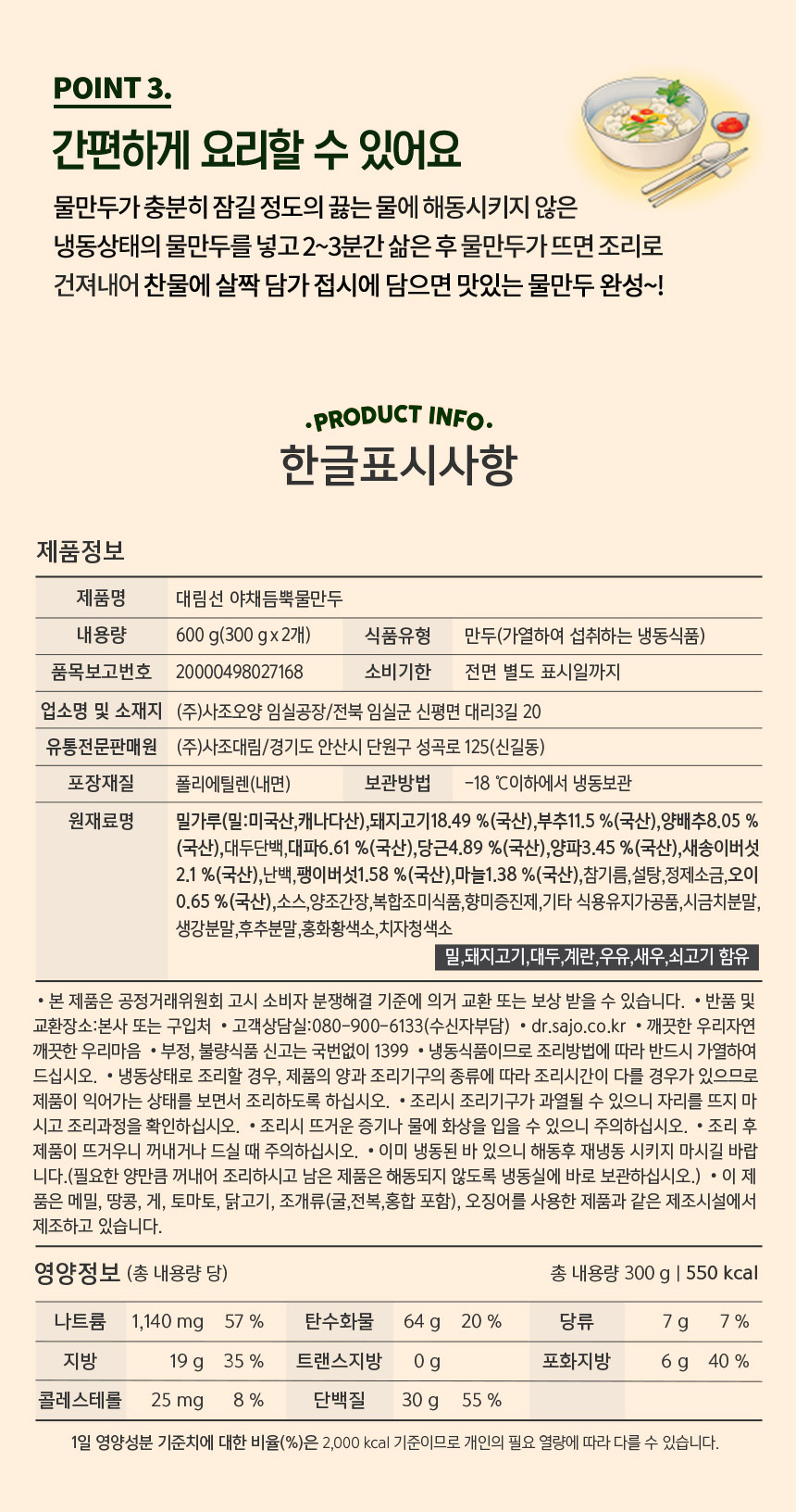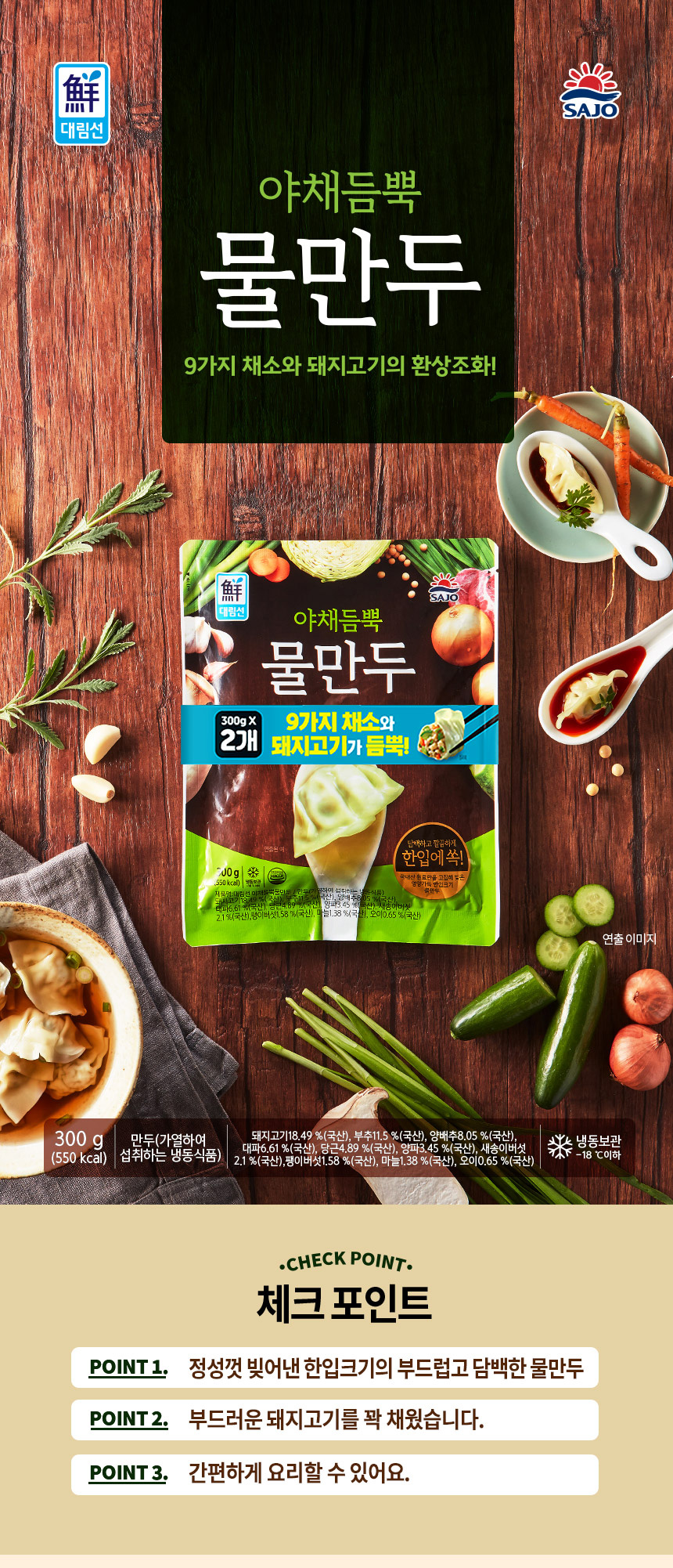 사조 야채듬뿍물만두 600g(300g*2) x 2개