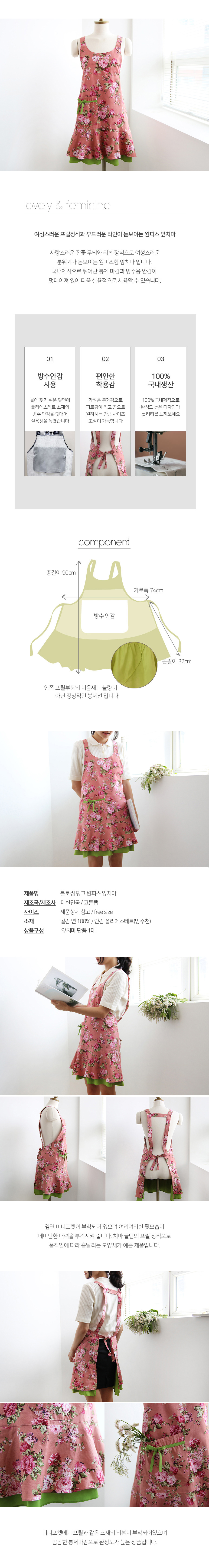 [CL] 블로썸 핑크 방수 앞치마