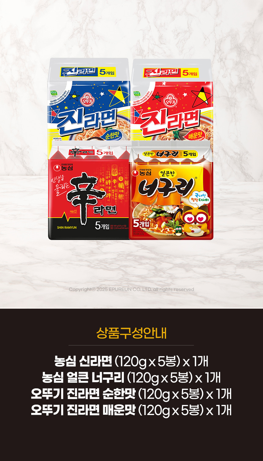[농심]신라면(5개)+너구리(5개)+진라면(10개)(순한맛+매운맛)