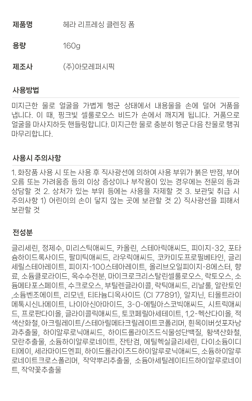 헤라 리프레싱 클렌징 폼 160ml 안자극대체테스트완료