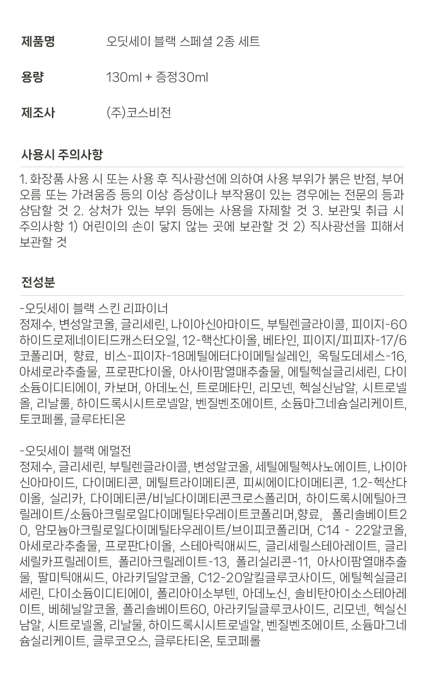 아모레 오딧세이 블랙 스페셜 2종 기획세트 40 50 60대 남자 남성화장품