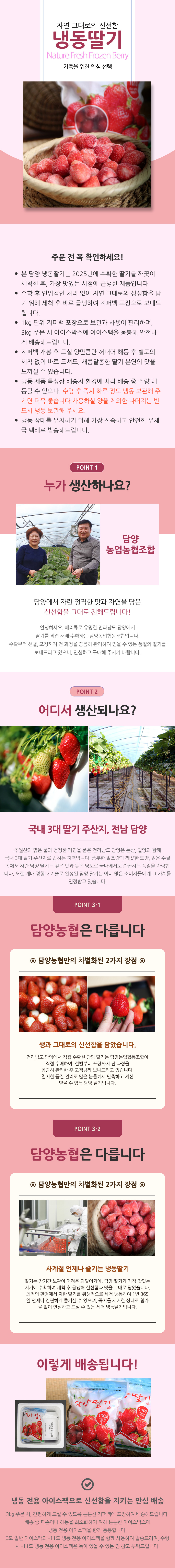 [국내산] 담양농협 냉동딸기(세척)3kg(1kg *3개)
