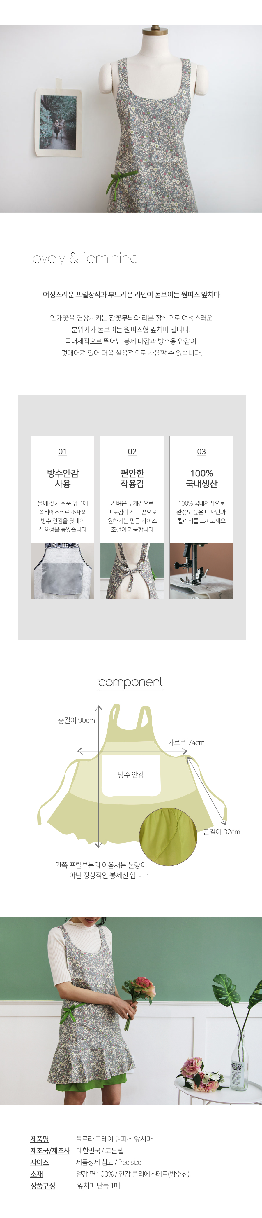 [CL] 플로라 그레이 방수 앞치마