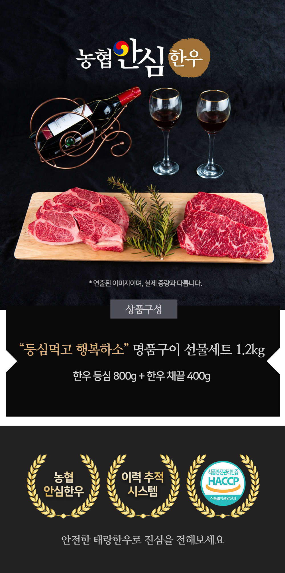 [농협안심한우] 1등급 등심먹고 행복하소 구이세트 1.2kg (등심800g+채끝400g)