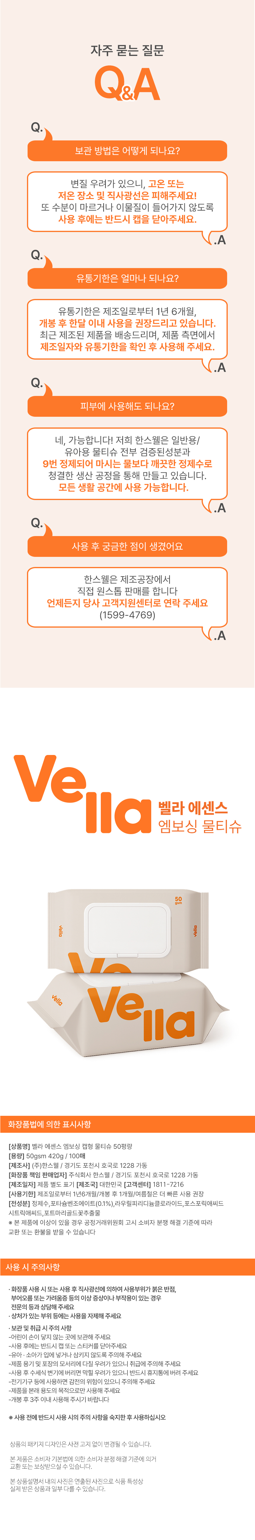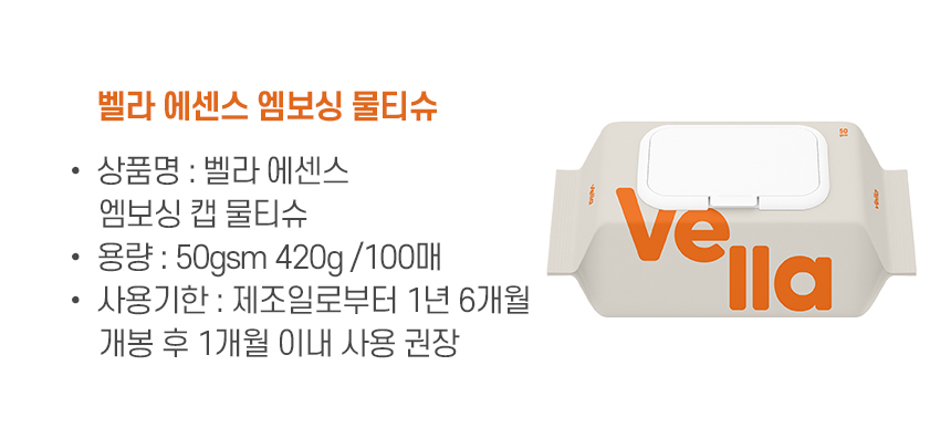 [벨라] 에센스 물티슈 50평량 캡형 10팩