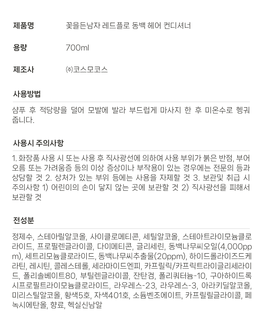 꽃을든남자 레드플로 동백 헤어 컨디셔너 700ml 모발영양 린스
