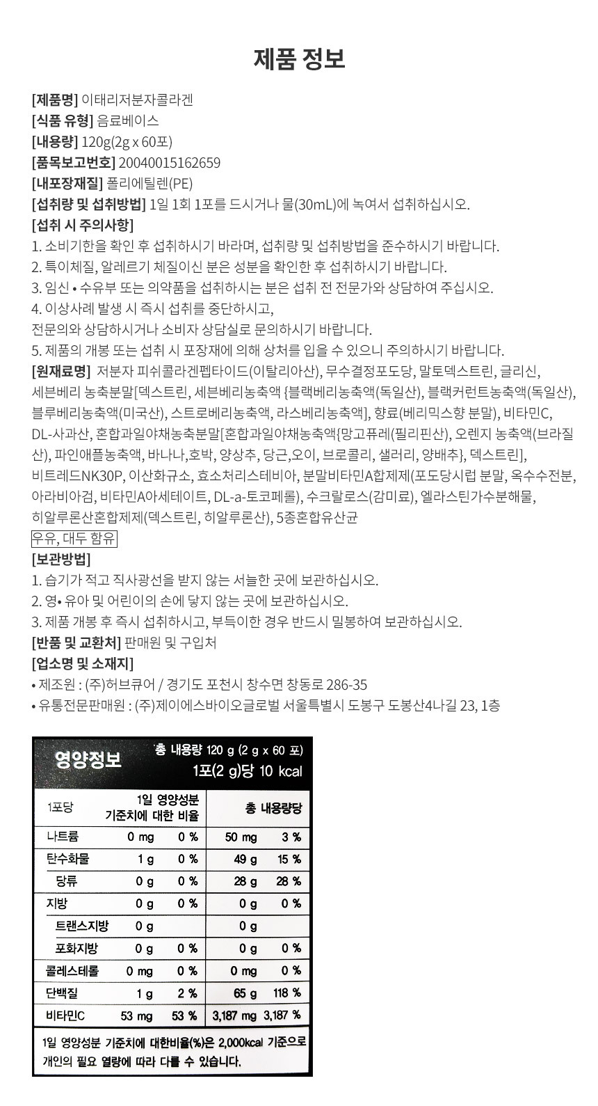 | 포장단위별 용량(중량), 수량 | 2g x 60포 (120g) |