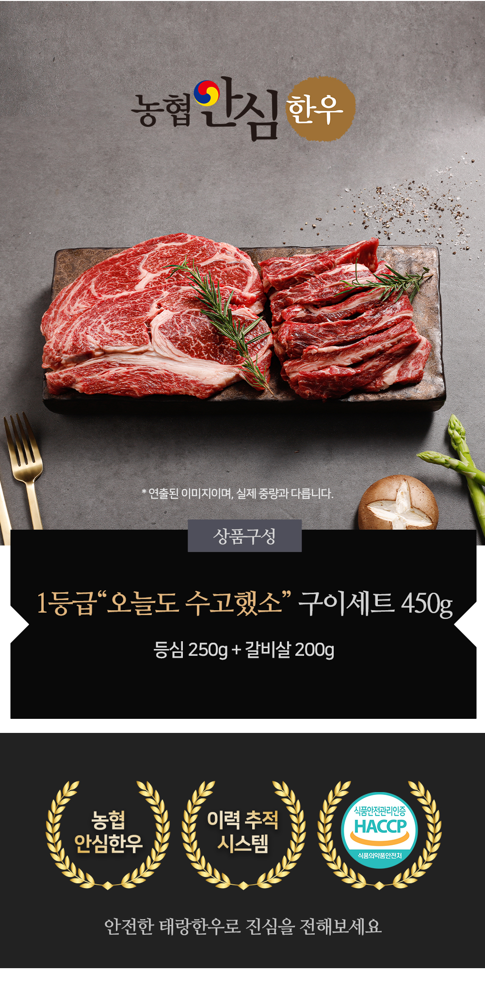 [농협안심한우] 1등급 한우 등심&갈비 모둠 450g (등심250g+갈비살200g)