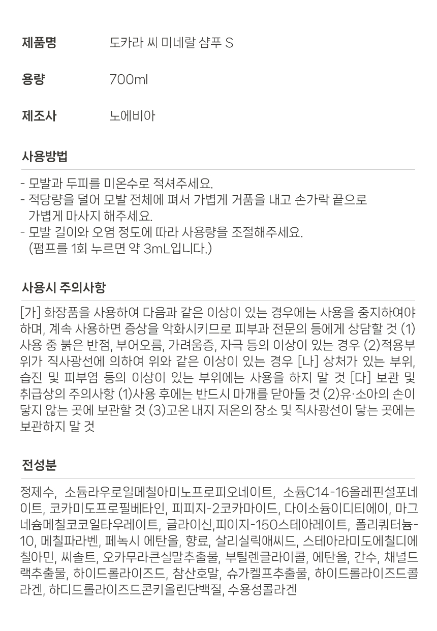 노에비아 도카라 씨 미네랄 샴푸 S 700ml+모발아 더마 스칼프 헤어팩 270ml