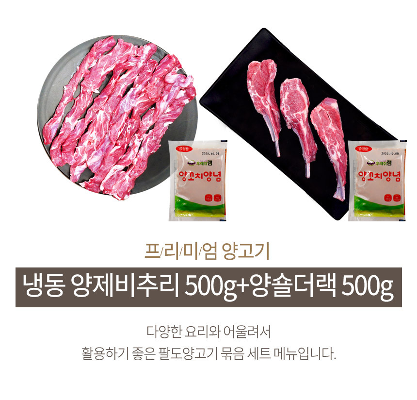 양고기 냉동 양제비추리 500g + 양숄더랙 500g +소스20g