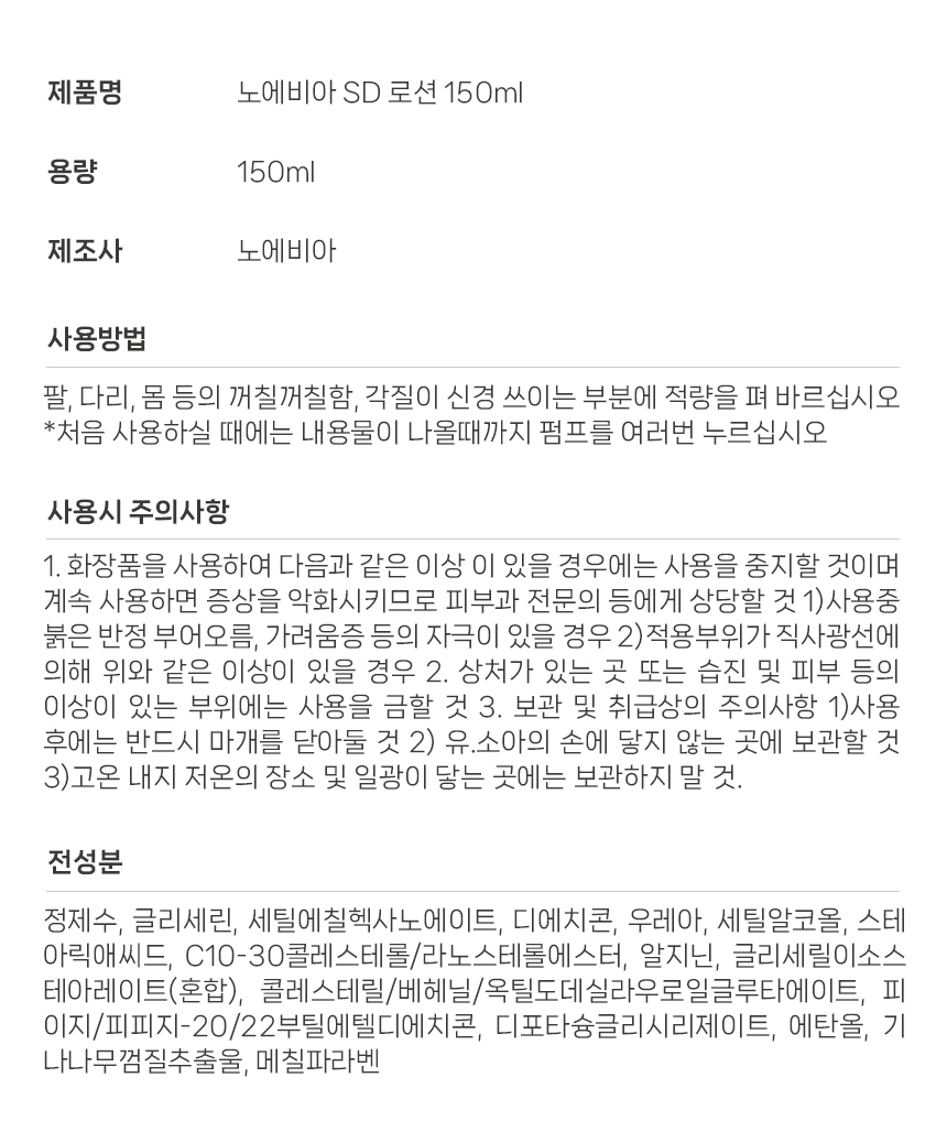 노에비아 SD 무향료 피부가려움 억제 고보습 바디로션 150g+메디힐 라보케어 풋 테라핀 100g
