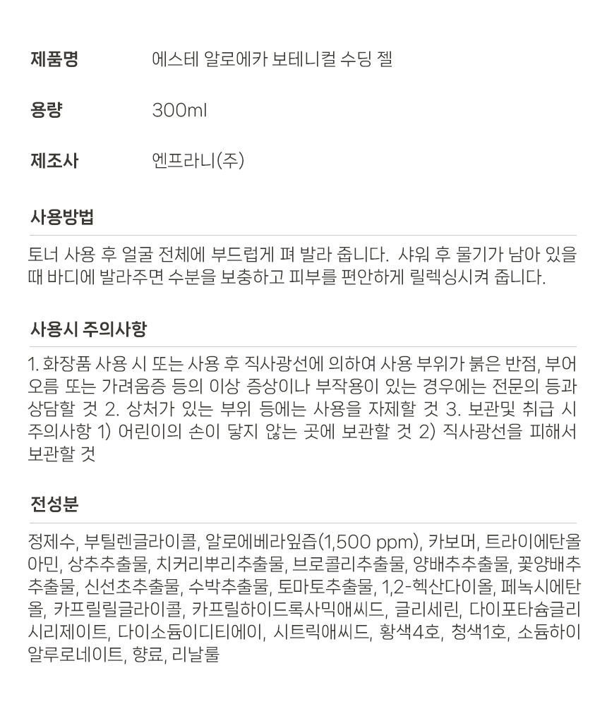 엔프라니 에스테 알로에카 보테니컬 수딩 겔 300ml 수딩젤