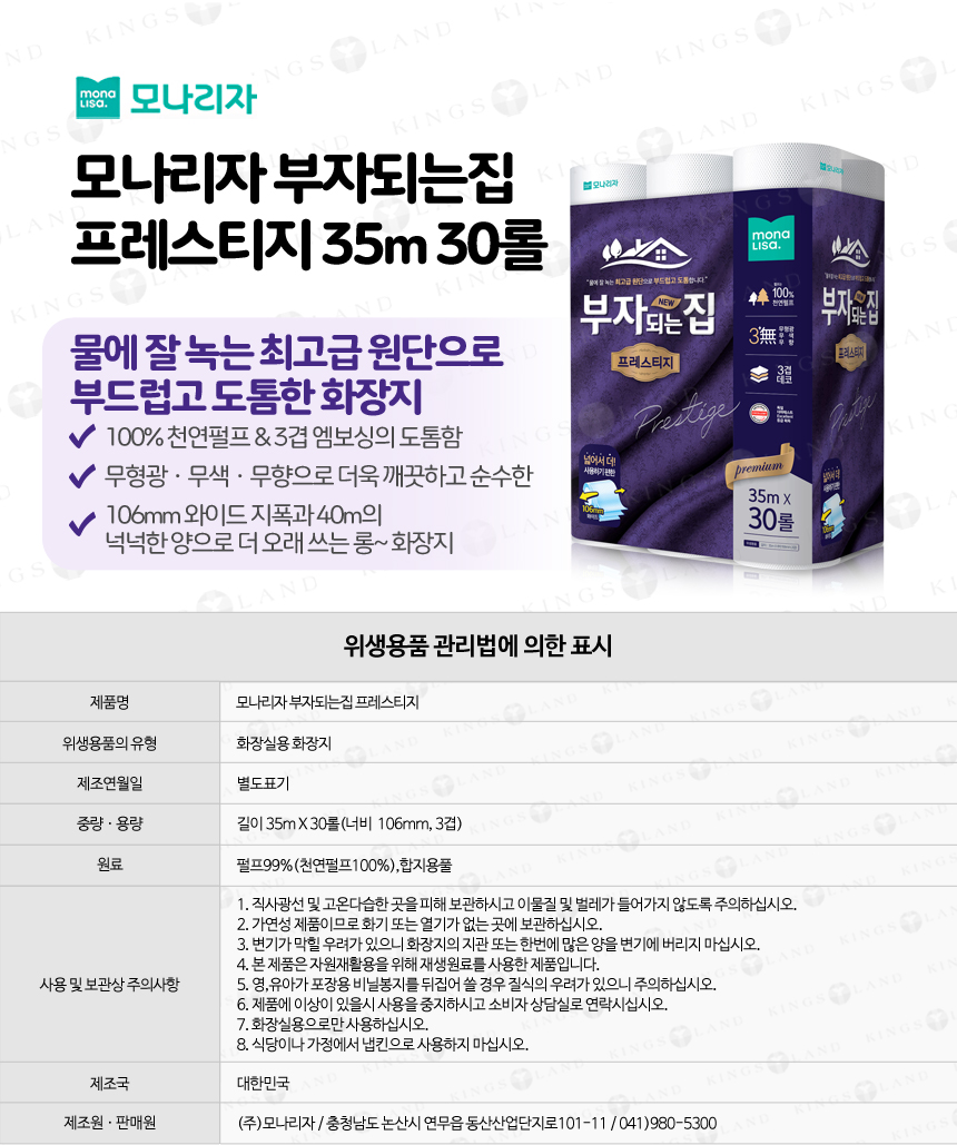 모나리자 부자되는집 프레스티지 35m*30롤 2팩