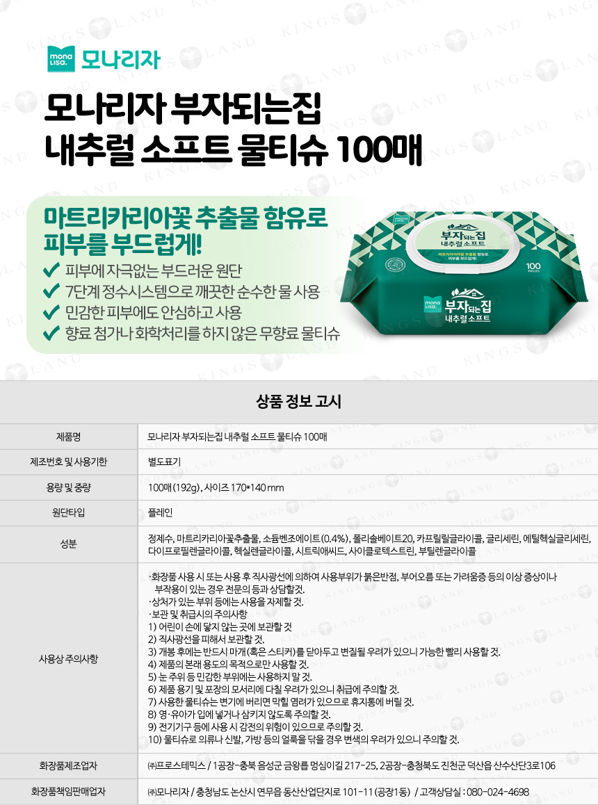 모나리자 부자되는집 내추럴 소프트 WT 캡 100매 12팩