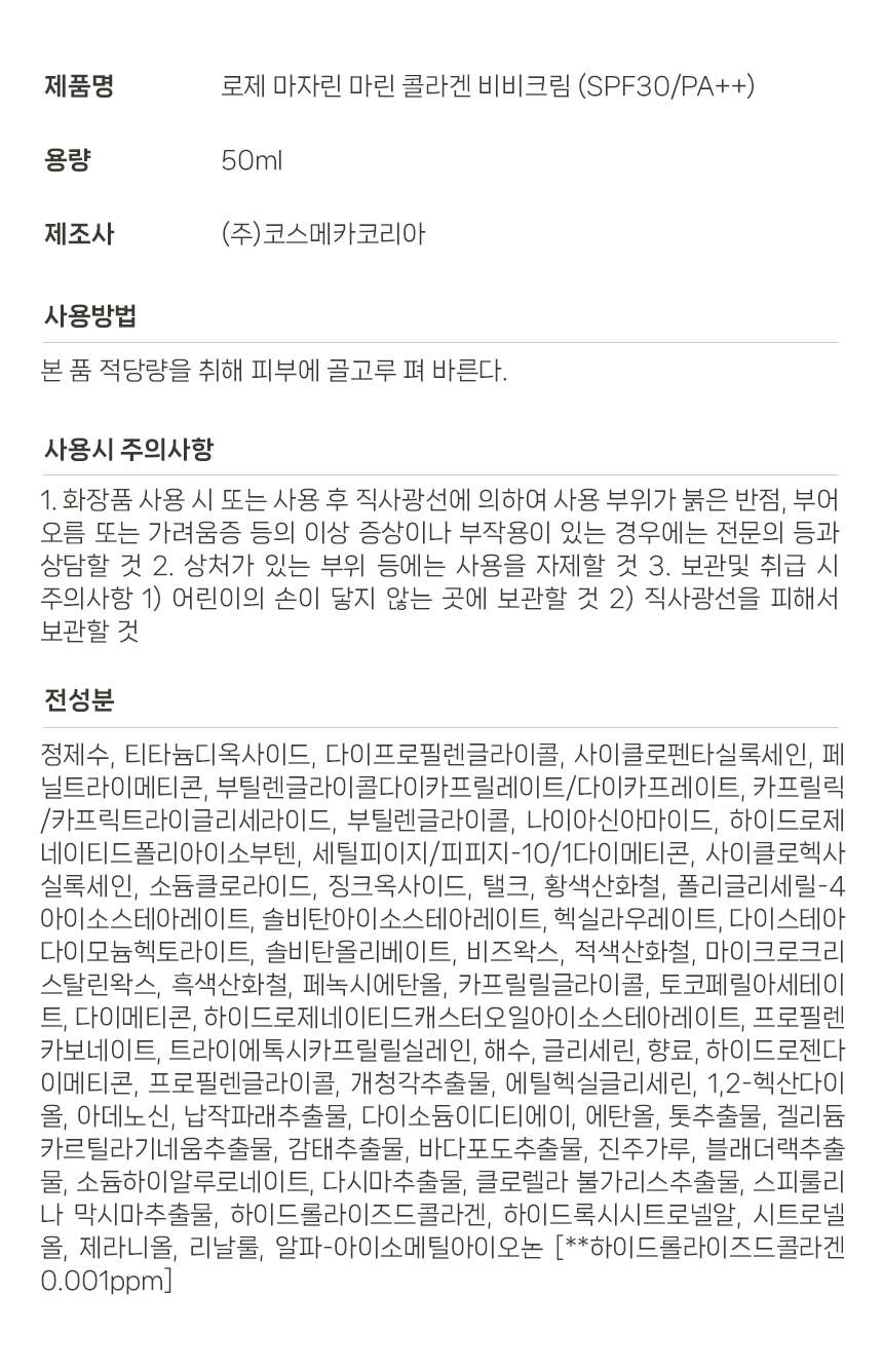 마자린 마린 콜라겐 비비크림 50ml 미백 주름 자외선차단 SPF30