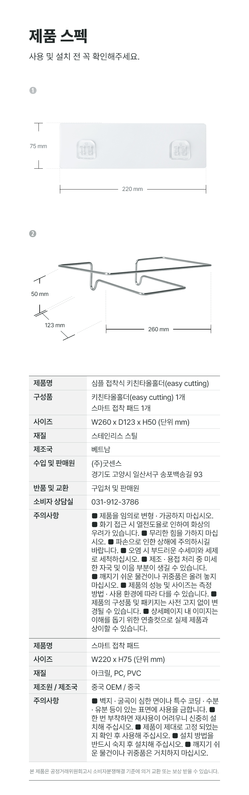 | 품질보증기준 | 사용전 상품 교환가능/소비자 과실이 아닌경우 6개월 동안 무상 A/S |