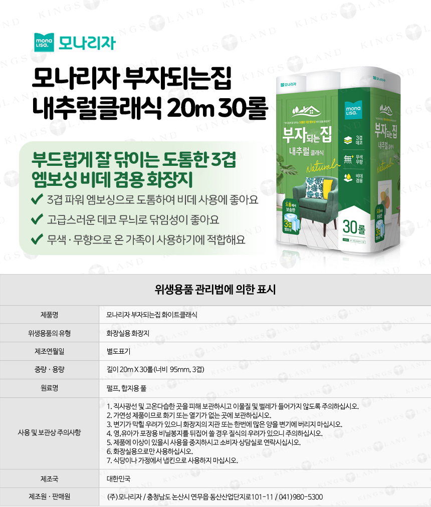 모나리자 부자되는집 내추럴클래식 20m*30롤 2팩