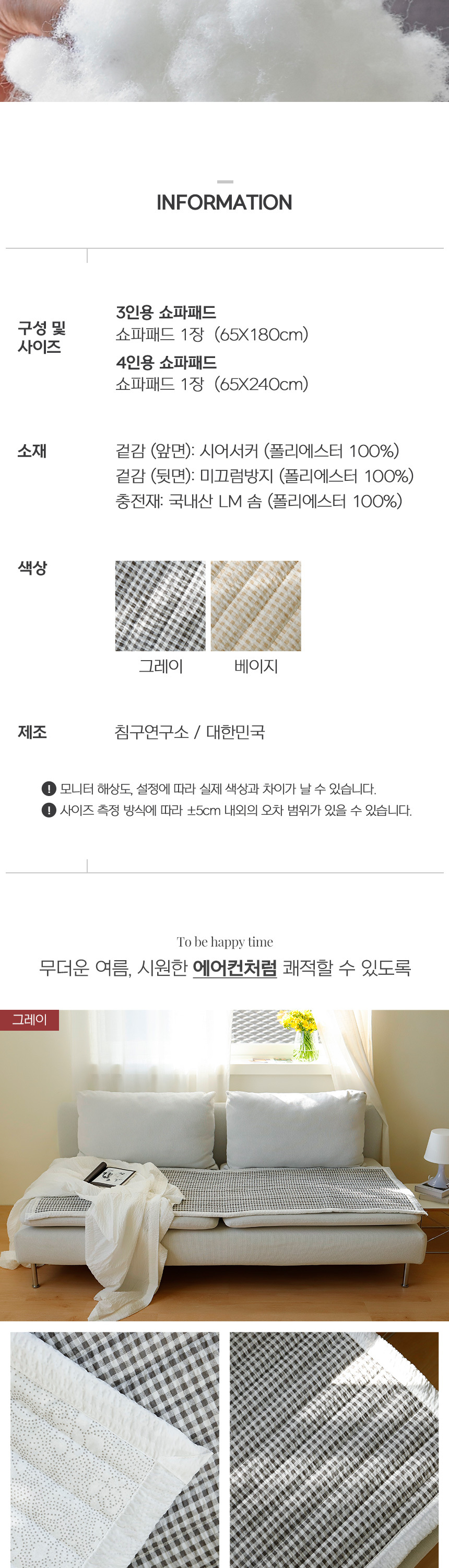 [침구연구소] 켄싱턴 시어서커 여름 쇼파패드 3인용
