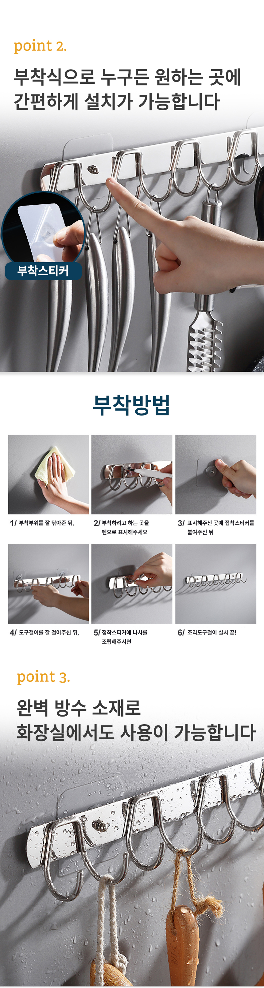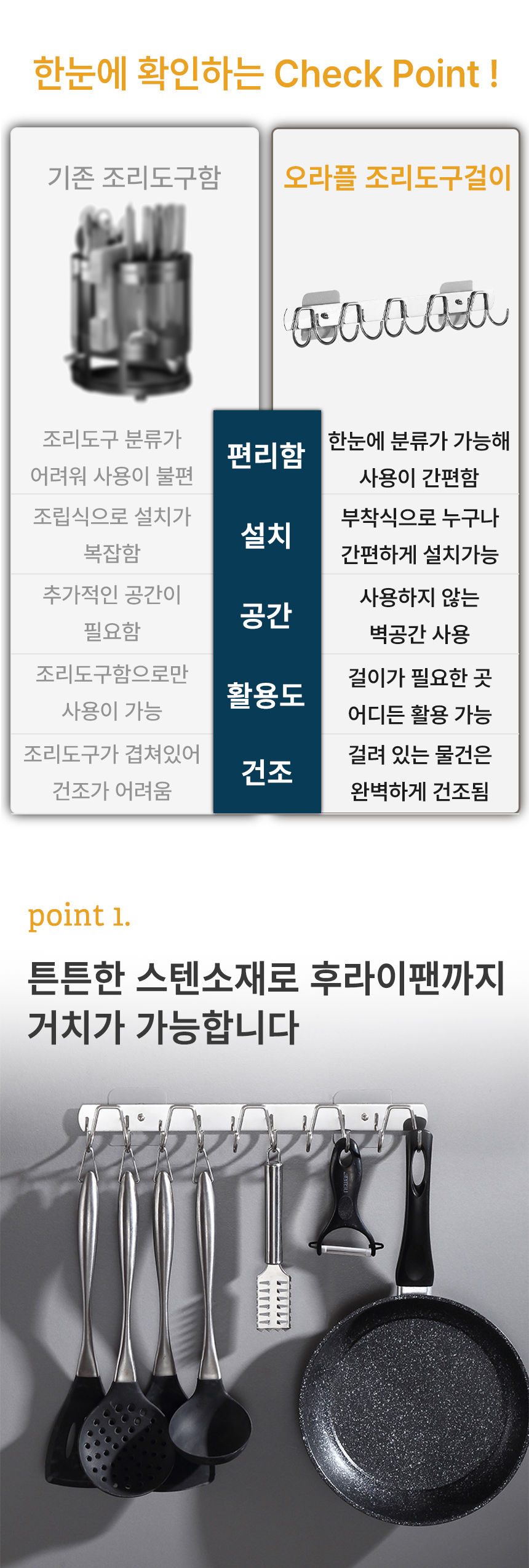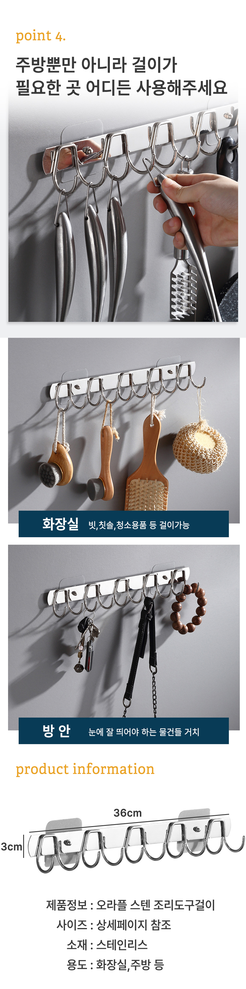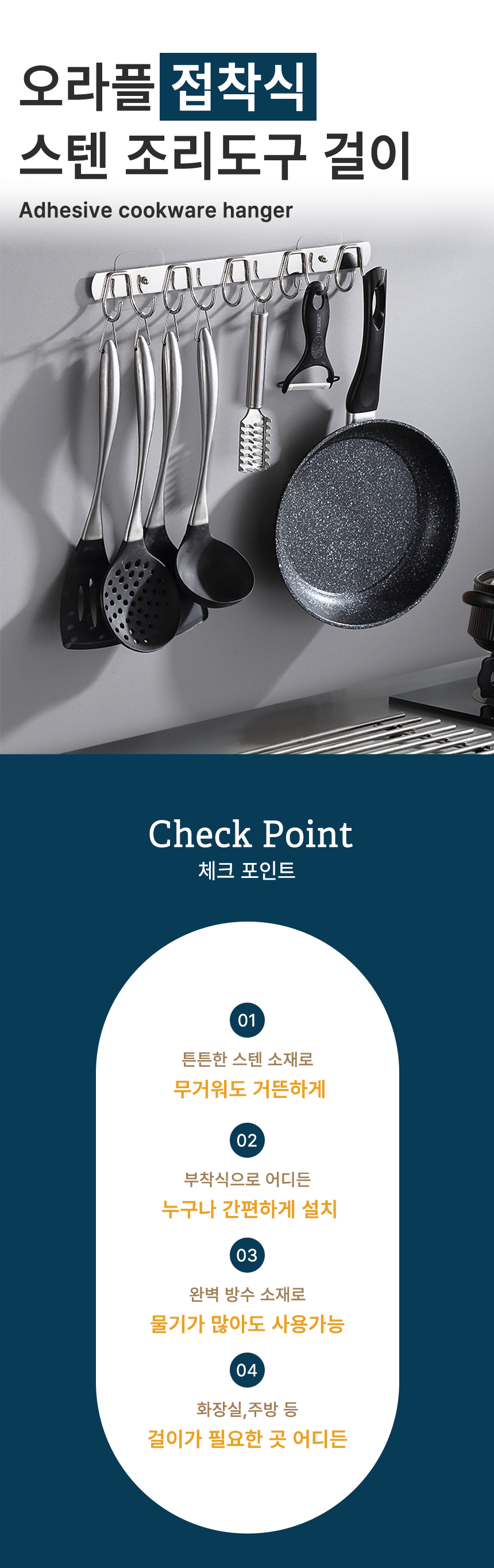 [오라플] 무타공 접착식 스텐 조리도구걸이