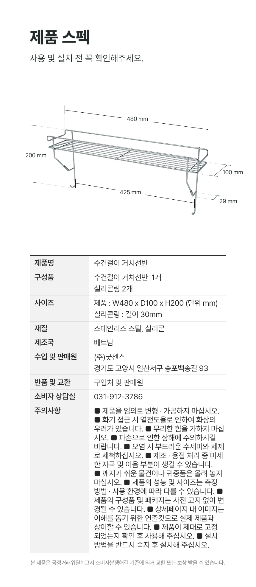 | 품질보증기준 | 본 제품에 이상이 있을 경우 공정거래위원회 고시 소비자분쟁해결기준에 의해 보상해 드립니다. |